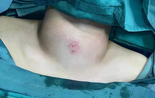 近日,深圳恒生醫(yī)院甲乳外科成功為一名甲亢十年、巨大甲狀腺的患者,成功實(shí)施了甲狀腺雙葉及峽部近全消融手術(shù)(一次性)。