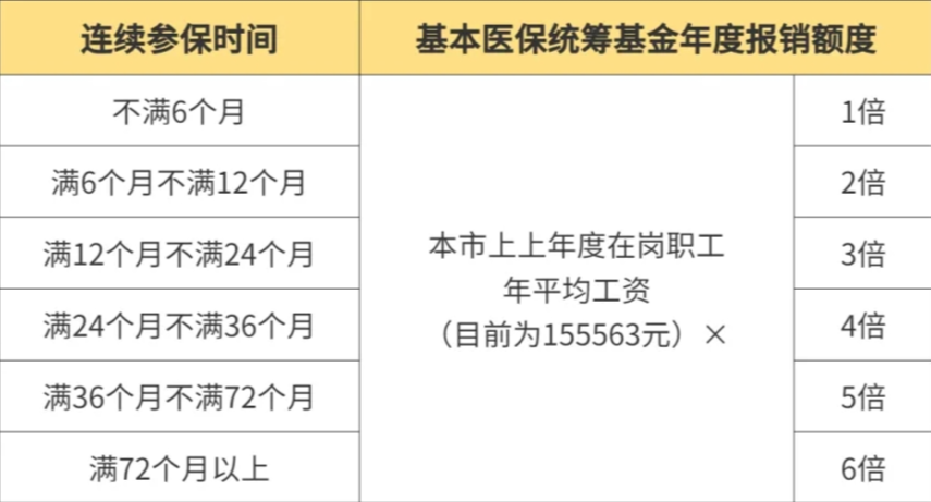 注:上面提到的基本醫(yī)保統(tǒng)籌基金年度報銷額度與參保人連續(xù)參加基本醫(yī)保的時間掛鉤。